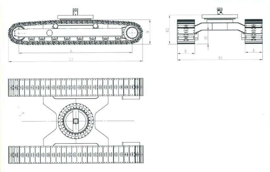 此款產(chǎn)品適用于大型挖機(jī)和打樁機(jī), X形棟梁增大底盤的強(qiáng)度,增大承載力度,采用低速大扭矩內(nèi)藏式行走減速機(jī)驅(qū)動(dòng),外觀精致細(xì)巧??筛鶕?jù)客戶要求訂做。