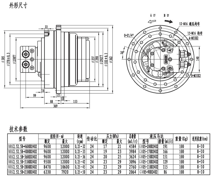 MRK2.52.5系列履帶(車輪)行走減速機(jī)適用于小挖機(jī)載重4-6噸,鉆機(jī)6-8噸及8-10噸,輸出扭矩從6000NM—12000NM不等。采用兩級(jí)減速,使輸出扭矩加大的情況下外形尺寸更加緊湊。輸出轉(zhuǎn)速?gòu)?.25---30R/Min均勻穩(wěn)定的低速工作。